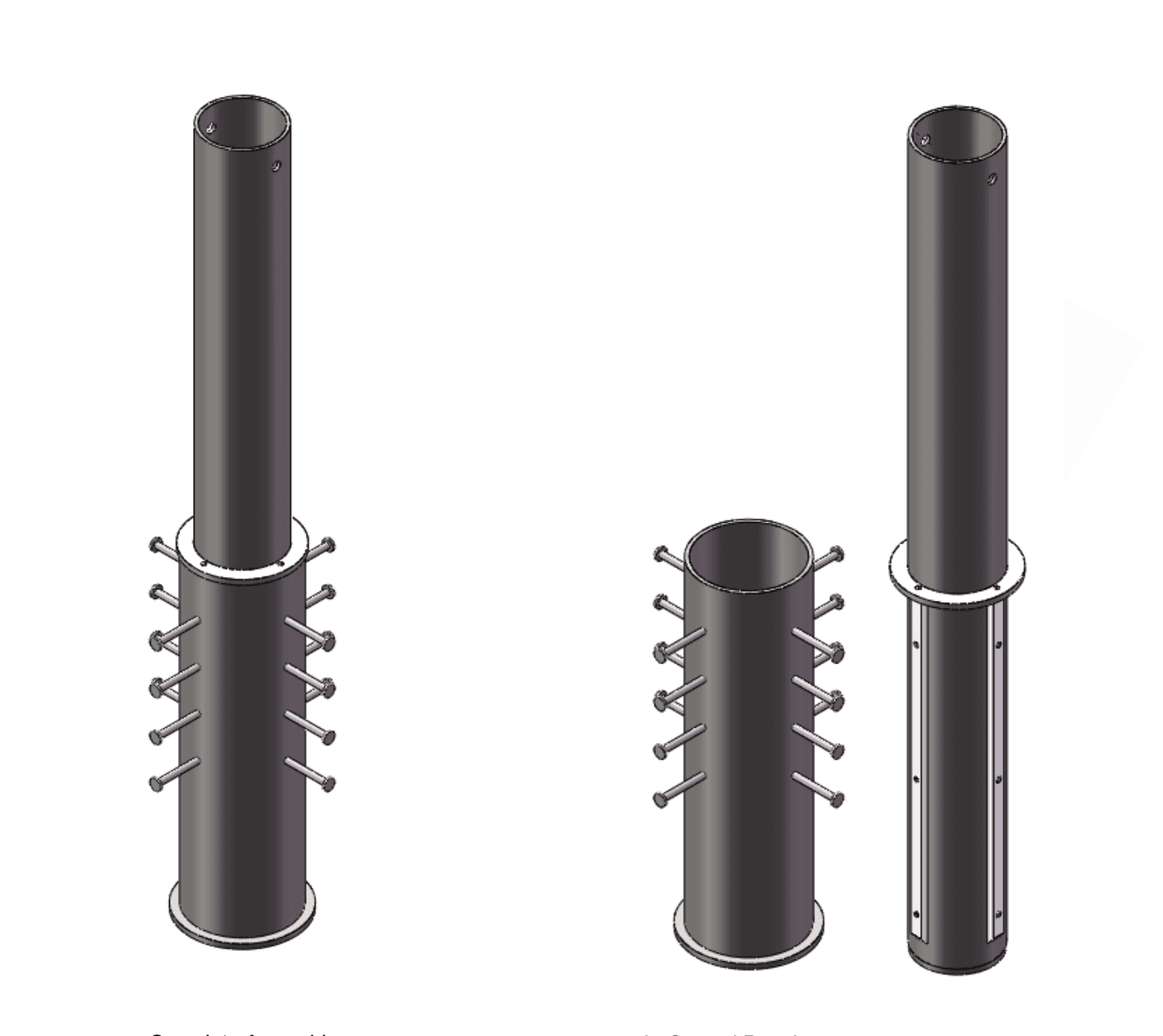 This 900 mm bollard locks securely into a reinforced ground fitting using a profile cylinder lock. To remove it, the operator loosens the top retention screw, attaches the lifting eye, unlocks the mechanism, and lifts the cylinder free using the integrated handle. When removed, the recessed base remains flush with the surface, allowing vehicles or equipment to pass through without obstruction.